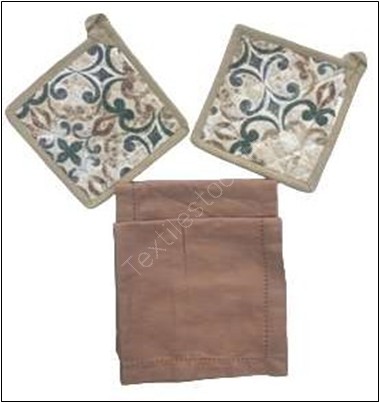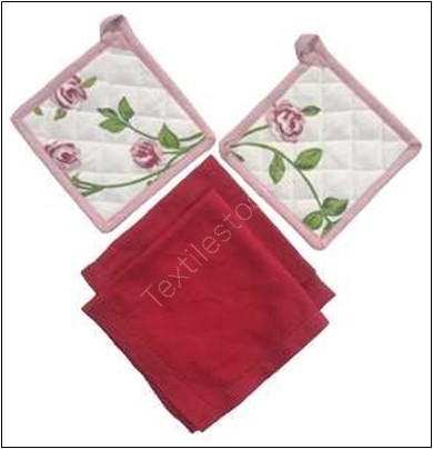 Exclusive Offer# 3001 Coordinated Potholder With Napkin 4pc Set Stock at Heavy Discounts ⭐Customized packing available ⭐No defect Guaranteed. ⭐Fast and reliable shipping. ⭐Third Party Inspection Available Potholder Size - 17X17 cm (7X7 inch) Napkin Size - 40X40 cm (16X16 inch)